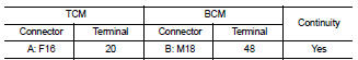 3. Check continuity between TCM connector and BCM harness connector.