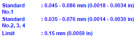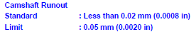 When out of the specified range, replace either or both camshaft and cylinder head.