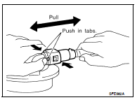 CAUTION: • The tube can be removed when the tabs are completely depressed. Do not twist it more than necessary.
