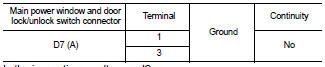 4. Check continuity between main power window and door lock/unlock switch connector and ground.