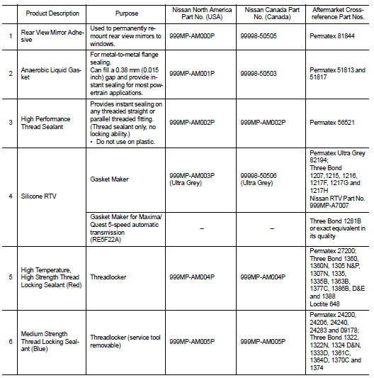 Nissan Altima (L32) 2007-2012 Service Manual: Recommended chemical products and sealants