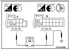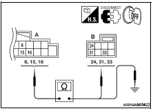 3. Check continuity between Bluetooth control unit connector B126 (A) terminals and spiral cable connector M30 (B) terminals.