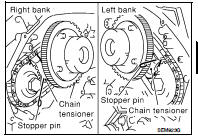 16. Attach a suitable stopper pin to the right and left camshaft chain tensioners (for secondary timing chains).